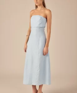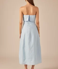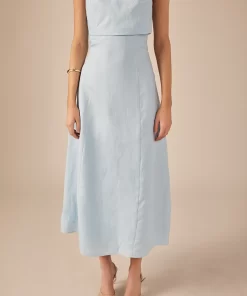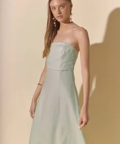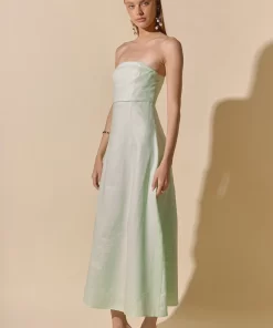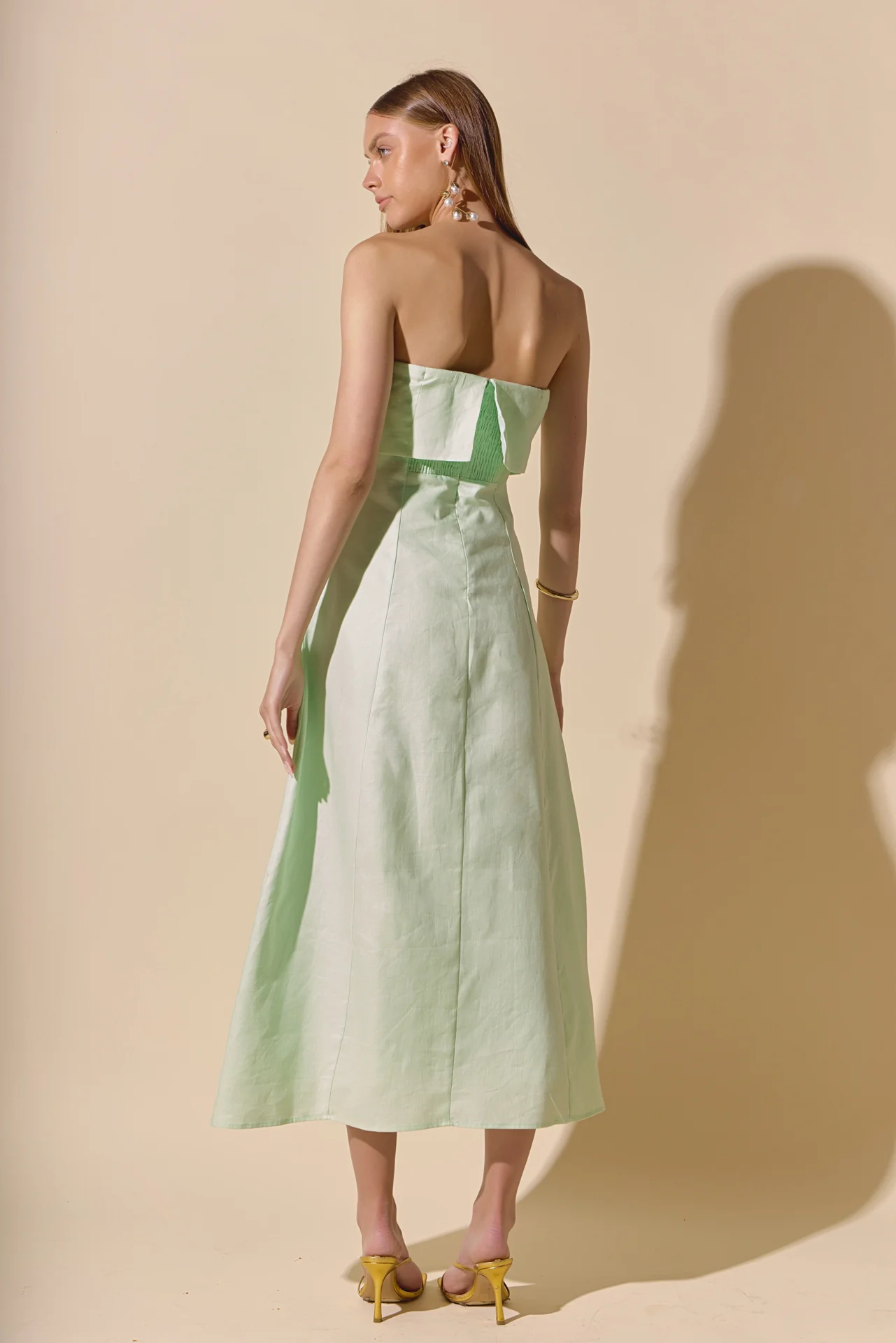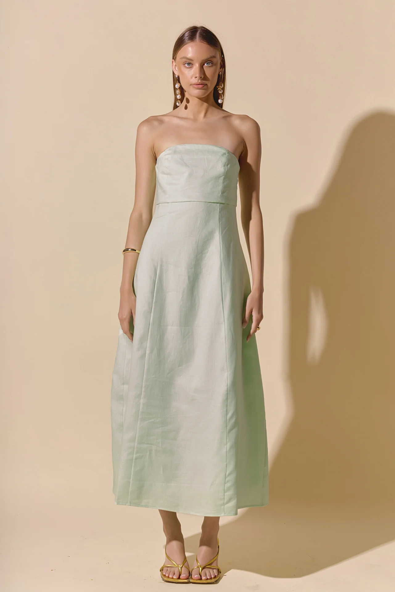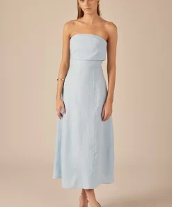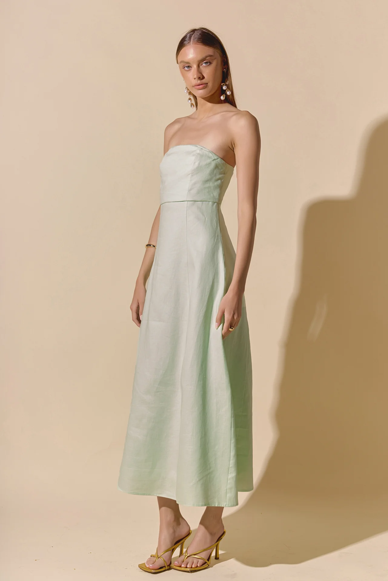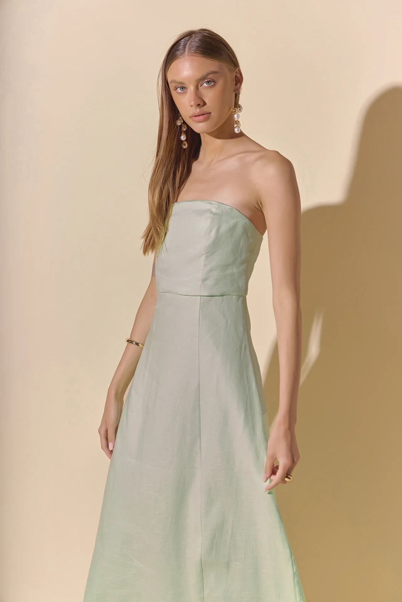 Introducing our Lucia Folded Strapless Linen Maxi Dress, perfect for warm weather and effortless style. Made with high-quality linen fabric, this dress is breathable, lightweight and oh-so-comfortable. The folded bust adds a touch of sophistication, while the strapless design and smocking detail create a flattering silhouette. Versatile and chic, this dress is ideal for any occasion. Elevate your wardrobe with this must-have piece that combines comfort and style. Shop now and make a statement with our Lucia Folded Strapless Linen Maxi Dress. Linen Folded bust Strapless Smocking Back zipper Fit and flare Maxi length Lining Hand Wash Cold Do Not Bleach Do Not Tumble Dry Iron Low Shell: 100% Linen Lining: 100% Cotton Exclusive of Elastic HN3869D Chest: 33″, Total length: 52.75″ S PISTACHIO, OCEAN BLUE: Height 5’10” / Bust 34″ / Waist 26″ / Hip 36″
