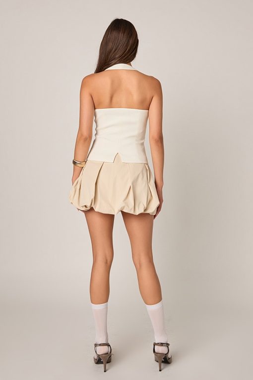 The perfect blend of style and comfort, our Holly Balloon Skort is the must-have piece for your summer wardrobe. Made from high-quality, lightweight fabric, it features an adorable balloon-shaped silhouette that is flattering for all body types. The built-in shorts provide extra coverage and allow for worry-free movement. Dress it up or down, this versatile skort is perfect for any occasion. Get ready to make a statement with our Holly Balloon Skort. Mini Balloon skort Side zipper Lined Shell: 100% Cotton Lining: 80% Polyester 20% Cotton AY1008P S BEIGE: Height 5’8″ / Bust 32″ / Waist 24″ / Hips 36.5″